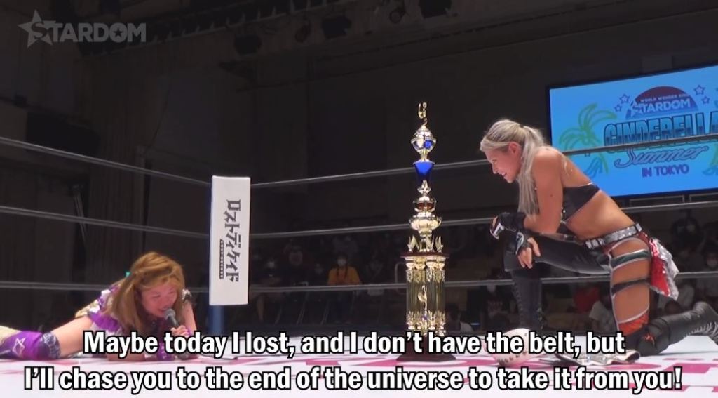 Just like that, both of their destined rivals were gone. All that remained was the vacated Wonder of Stardom Championship. A title Giulia felt she was owed after winning the Cinderella Tournament and earning the right to challenge, and a title Tam felt was rightfully hers as it was written in the stars that she would be the one to beat Arisa for the title.