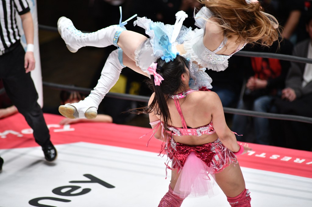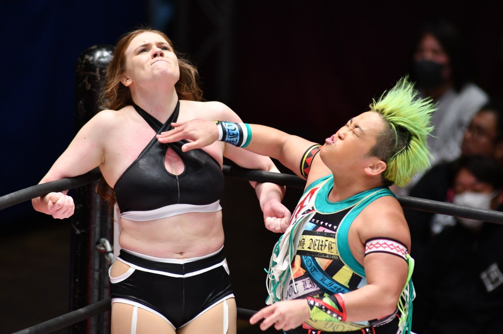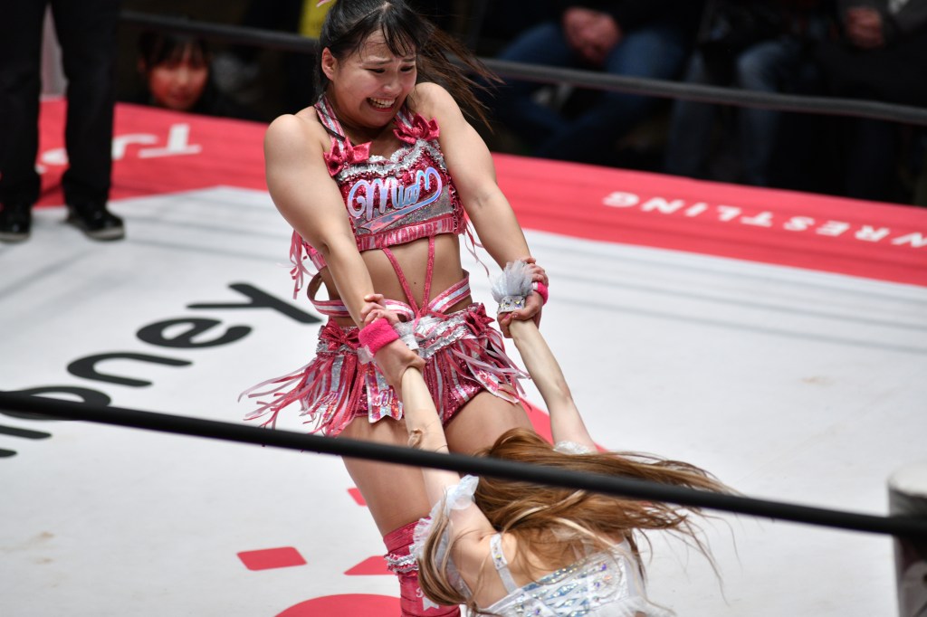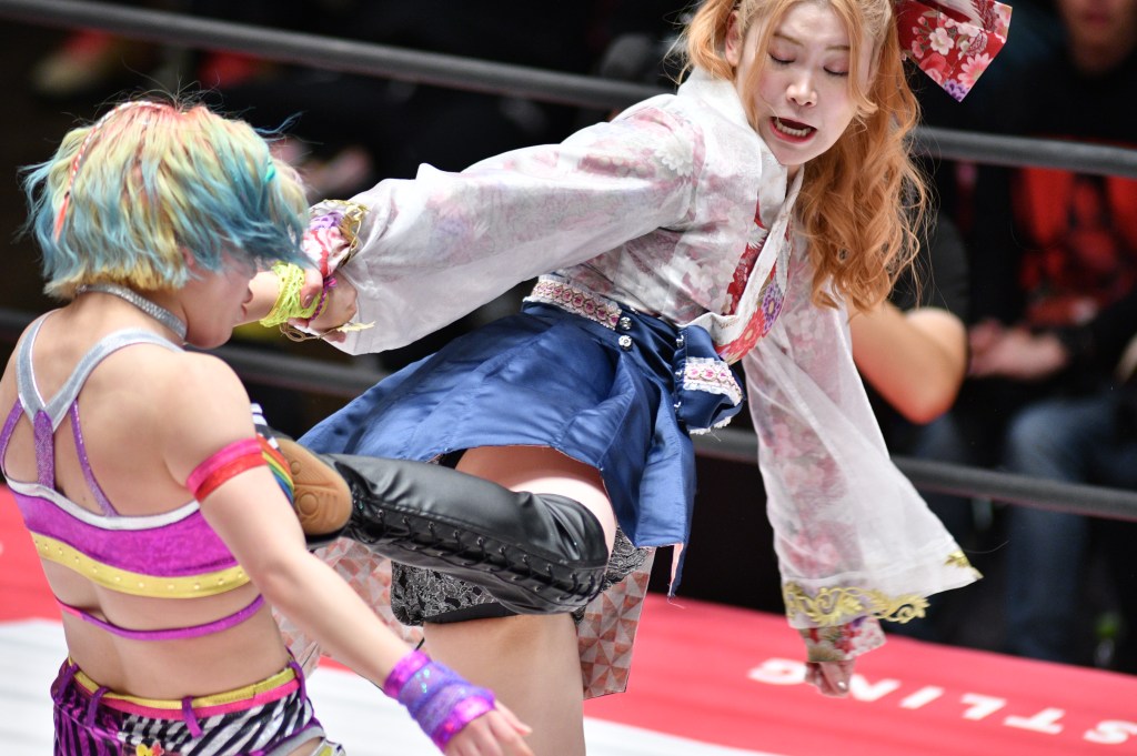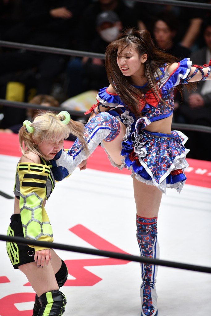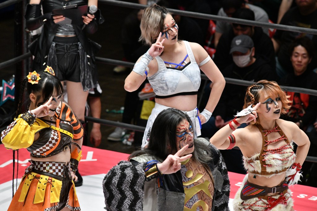 Raku on big shows has found a nice place with her usual shenanigans and this match featured some talent that works really well in this universe. AEW’s Bryce Remsburg was a good straight man to all the comedy as was Kong. Raku not backing down to Kong was a good continuation to the storyline from Hype! Pom and Neko had some time to shine while Yuki got to be a powerhouse. Mahiro was the unfortunate target of so much of their antics and that continued in the next match as well. Yuki landed the Venus DDT on Neko to get the three-count.