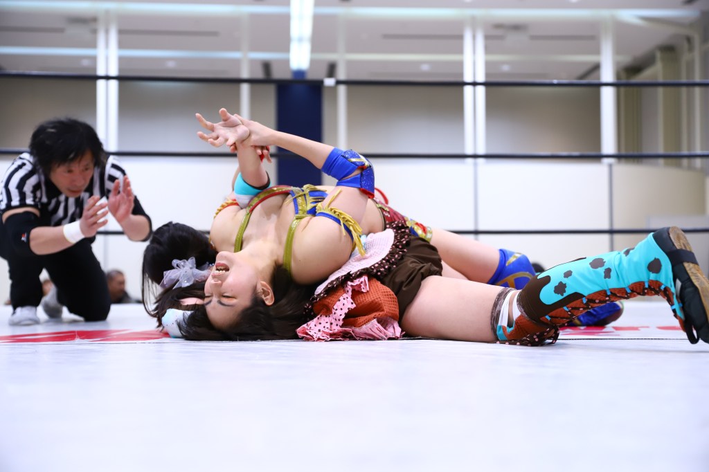 She got a lot out of Hina in a short time; it was under five minutes but served the purpose of having Hina get some reps and for Naru to shine. Naru hit a spear and followed right up with a magistral cradle to get the win.