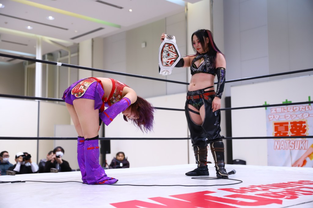 After the match, Ishikawa challenged Mari for the KING of Entertainment title. They then went into the sign-off with pinkies up and ended the night with another title match on the horizon.