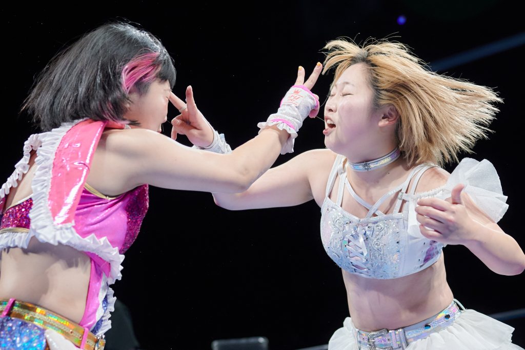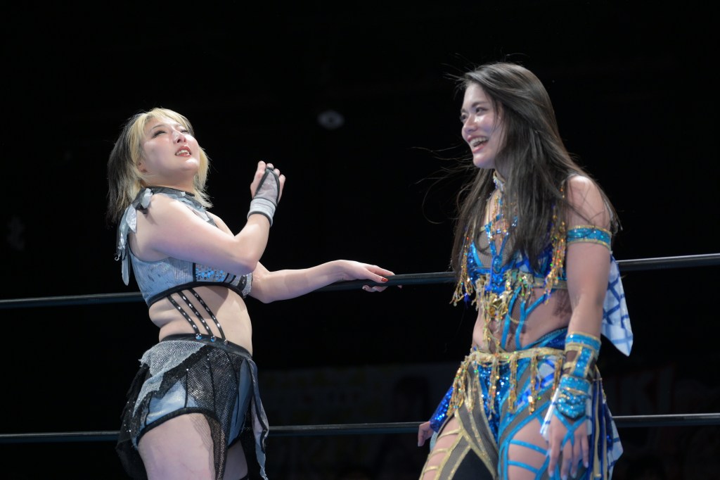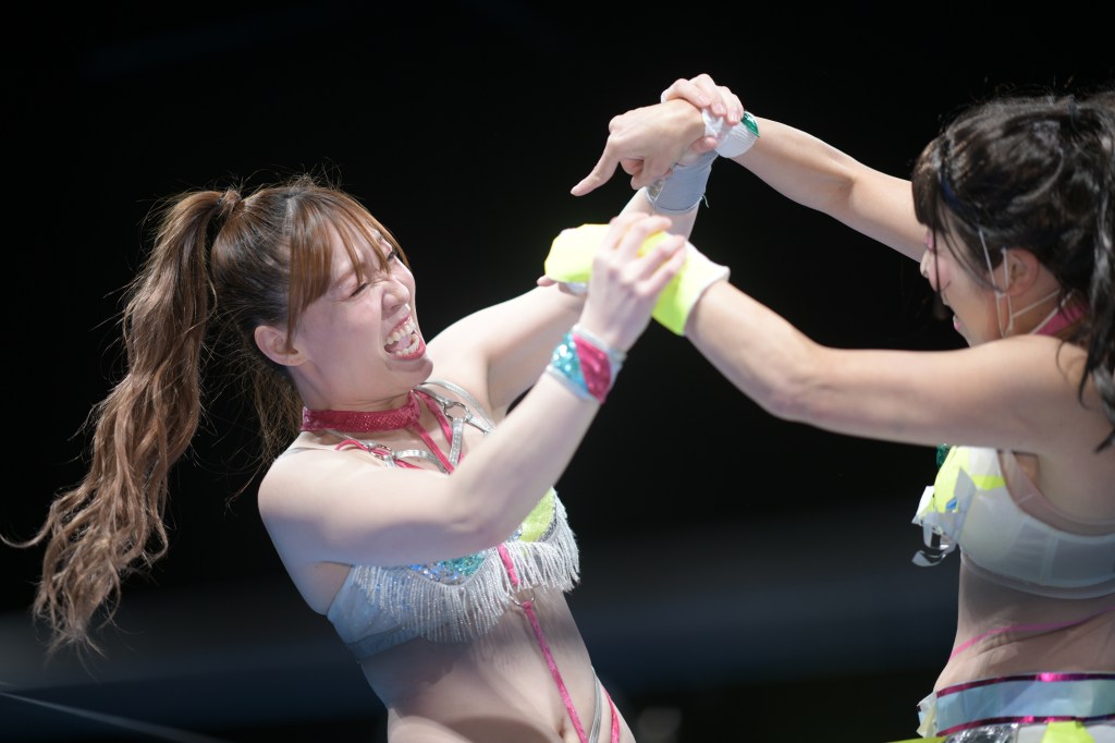 Yuna and Tae started off, and it’s noteworthy because almost exactly 10 years ago at 1st Ring, Tae started her career with a Yuna-led AgZ. Yuna, like SAKI, has many connections and has touched many lives in joshi. A lot of triple teaming took place, which led to miscommunication and partners turning on one another.
