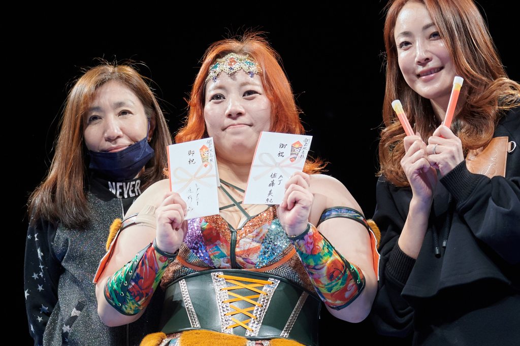 Main event time and orange glow sticks filled Shin-kiba in anticipation for Rina’s entrance and the crowd was loudly chanting “Amii.”