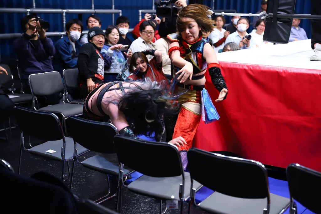 Yufa then announced she would be retiring at the 3/16 Korakuen Hall show. A colorful and mischievous addition to every show, Yufa is also loved by the roster, so she will be greatly missed. This was used as leverage by Asako when she asked for a title shot against Natsuki.
