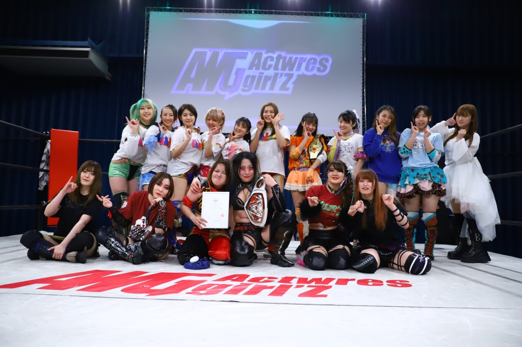 A fantastic match. Kyoka has had a great year with the Miyuki Takase Korakuen match and now this main event. There are few at Mari’s level in AWG, or even outside in pro wrestling. Call her an entertainer, Actwrestler, or pro wrestler; she is without a doubt one of the best. Post-match, Yui interrupts to challenge Mari, who is a bit taken aback by the brashness of the young Actress 5 member. Kyoka and Mari embrace after the all-out assault on one another. Yui lays out Kyoka with her lariat. Everyone gathers in the ring for pinkies up, and the first show in Tokyo Square is in the books.