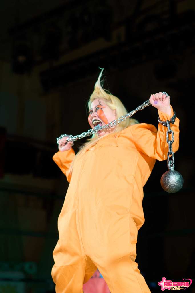 Pure comedy and a perfect addition to the show. Megaton was in an orange jumpsuit with a ball and chain. Ishikawa was dressed similarly to Gigaton with almost Gene Simmons face paint and mannerisms. Ishikawa is quite good at cosplaying her opponents. There was a lot of growling, appealing to the crowd, wild hair, face paint, and convict outfits. A Mongolian chop battle before Ishiikawa knocked out the referee with the ball and chain.