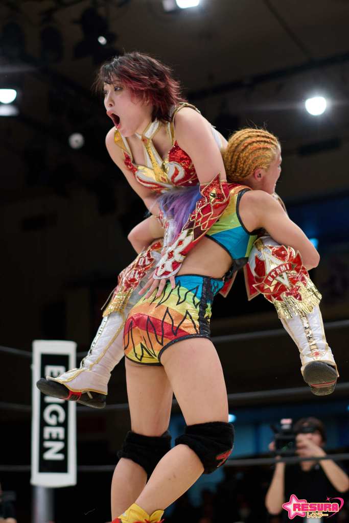 That was the story of the entire match, it was a continuous back and forth as neither would quit. For example, MIRAI hit a backdrop off the top, and Bozilla appeared to be in trouble, but she got an armbar, and MIRAI quickly answered back with an armbar of her own. Bozilla tried to put MIRAI through the mat with a monstrous powerbomb for the three count.