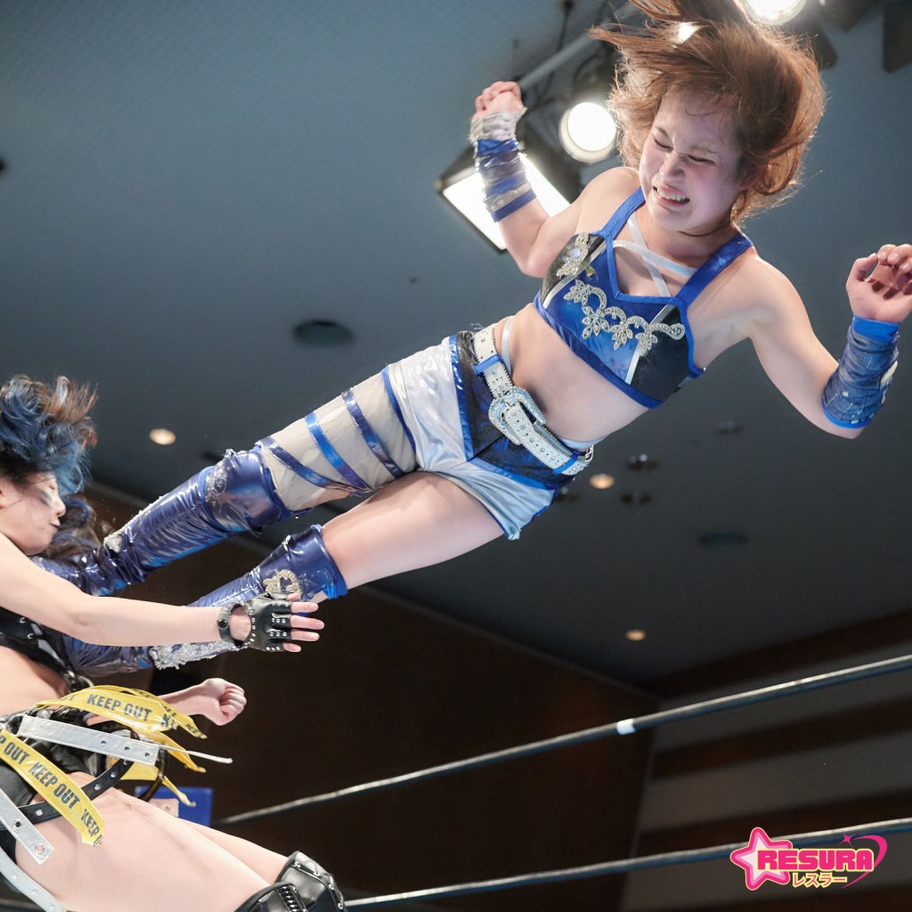 Mashiro immediately with finger poke attempts, and it set the tone early. YuuRI is in with Haruka, and they trade dragon sleepers. The match is a good opportunity for Haruka to wrestle with such experienced talent.