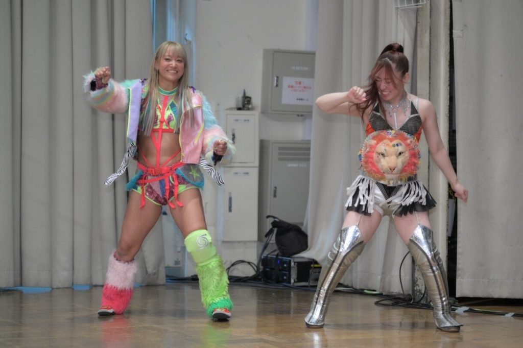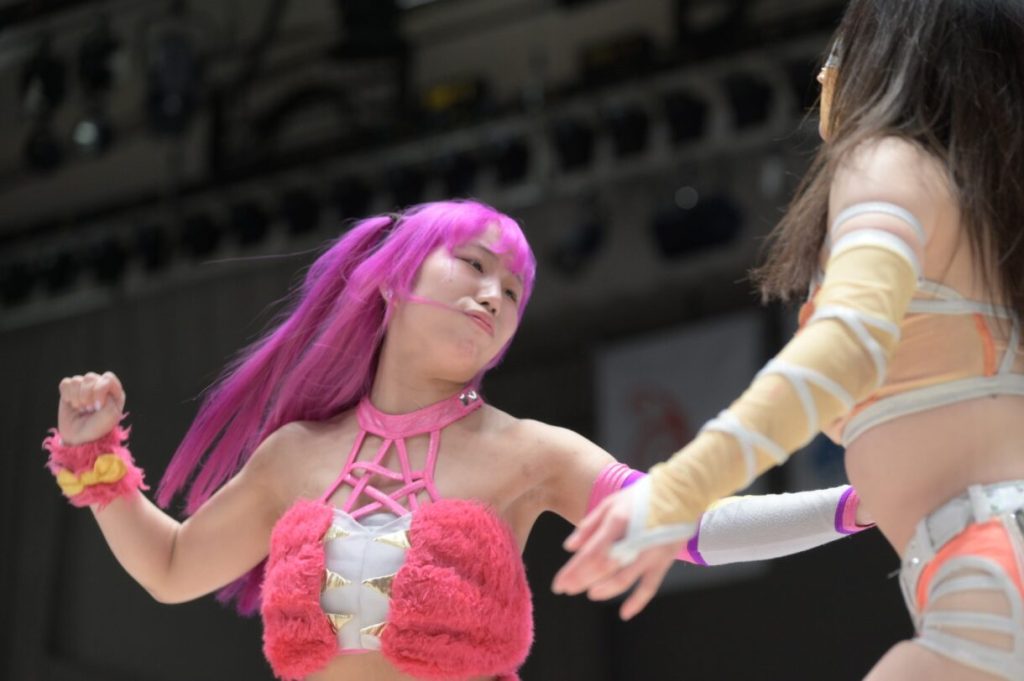 Tae and Shimizu decided to double-team Hidaka; the crowd booed when Hidaka got offense on either of them. galaxyPunch! targeted Maika; however, SpICEAP ruined the moment when they tried to pose for the crowd. This match was a chance for the fans to see Shimizu be great on her road to retirement. SAKI got a little risqué when she swung Maika headfirst into Itsuki, but Tae put a stop to it. Itsuki and SAKI then went at it, and things started to heat up.
