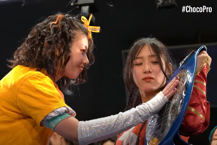 At ChocoPro 430: Fair Fight last month, Chie Koishikawa managed to achieve something she’s never done in her five-year career: pin Mei Suruga. During a tag team match, she surprised her friend with a brand-new pinning hold and trapped the champion’s shoulders to the mat. Emboldened by this accomplishment, she made a bold declaration after the show: