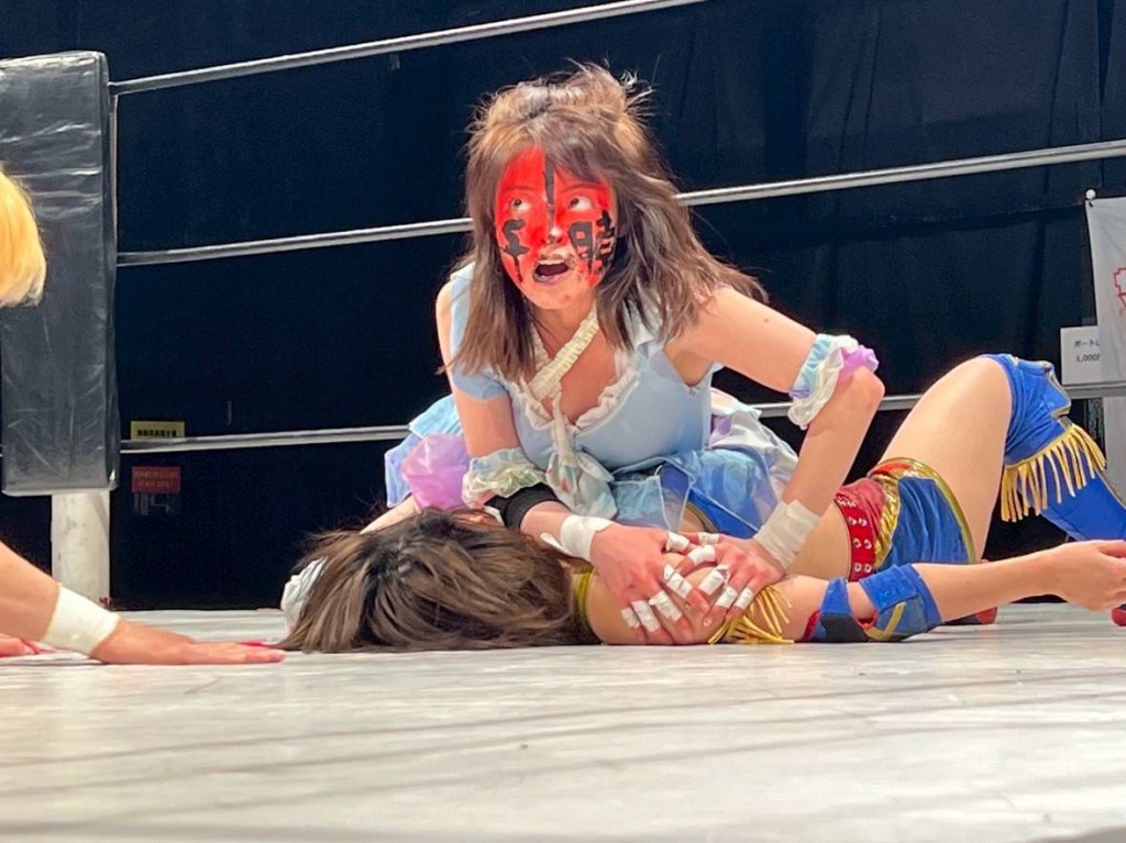 While a tag match, this was mostly about the continuing battle between Togi and her mentor, MARU. After repeated comebacks, Togi got trapped in the Stretch Muffler as MARU got the tap-out victory. Long-term emotional feuds are MARU’s specialty in this company, and this is another chapter from the masterful storyteller.