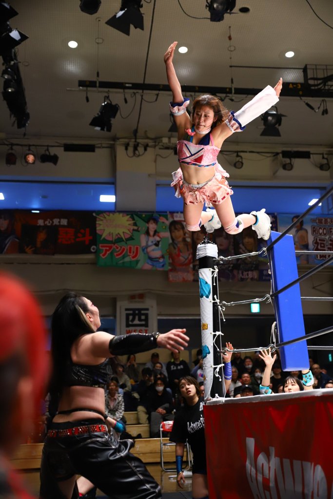 Mizushima was a breakout of the 2022 rebranding as AWG transformed into Action Entertainment. She quickly had people talking that she was rookie of the year for 2022, and with only a few matches under her belt, she pinned ACT, cementing those thoughts. She is part of the Genki Sentai Actress 5, which fits with her love of Toukatsu, especially Super Sentai or Power Rangers, as it’s known here in the West, and Ultra Man (which inspired the old Update+ pose).